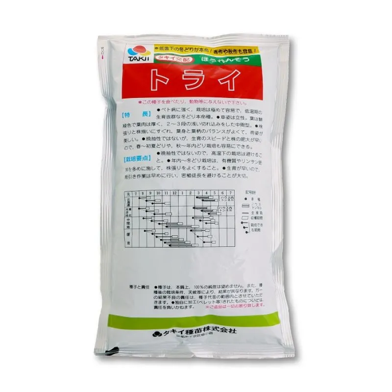بذر اسفناج داش تاکی ژاپن یکی از بهترین ارقام هیبرید اسفناج خارجی از برند معتبر تاکی ژاپن است که در بسته‌بندی‌های ۵۰۰ گرمی به بازار کشاورزی ایران عرضه می‌شود. این رقم پرفروش با ویژگی‌هایی چون زودرس بودن، عملکرد بالا، برگ‌های نیزه ای کشیده (مطابق تصویر (1)) و سبز تیره و مقاومت نسبت به گرما و بیماری سفیدک داخلی، یکی از انتخاب‌های اصلی کشاورزان حرفه‌ای برای کشت بهاره و پاییزه در فضای باز است.